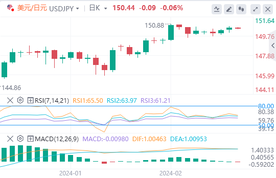 美元/日元自周一触底149.68点以来微幅上涨,在触及熟悉的技术阻力位150.50附近之前,美元/日元反弹至高位150.00关口。