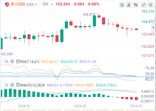 技术指标,包括50日均线104.089和200日均线103.782,表明只要该指数保持在枢轴点103.824上方,前景看涨。这表明市场略有看涨倾向,如果美元指数保持在支点上方,则有望上涨,反映投资者信心和有利的技术态势。