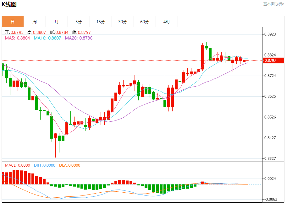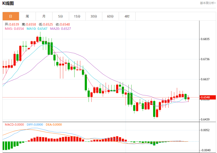 今日周二,澳元兑美元报0.6549,涨幅0.12%;美元兑加元报1.3504,跌幅0.02%;美元兑瑞郎报0.8799,跌幅0.03%。