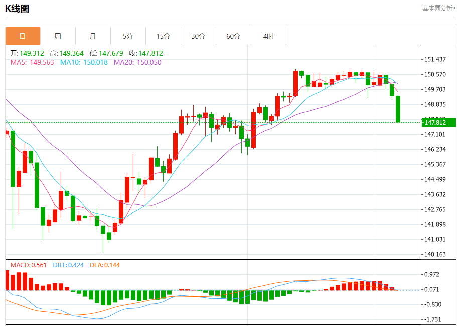 今日周四,欧元兑美元报1.0899,涨幅0.00%;英镑兑美元报1.2754,涨幅0.18%;美元兑日元报147.849,跌幅1.01%。