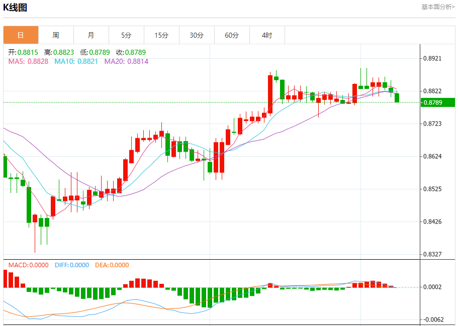 今天的预期交易范围在0.8770支撑和0.8900阻力之间。