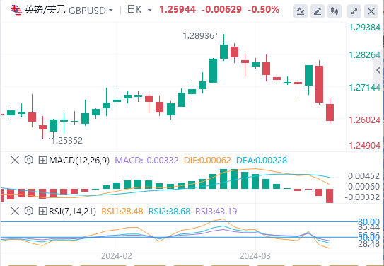 英镑刷新两周低点1.2600,因市场情绪依然低迷,且美元再度走强。衡量美元对六种主要货币价值的美元指数(DXY)升至104.20附近的两周新高。