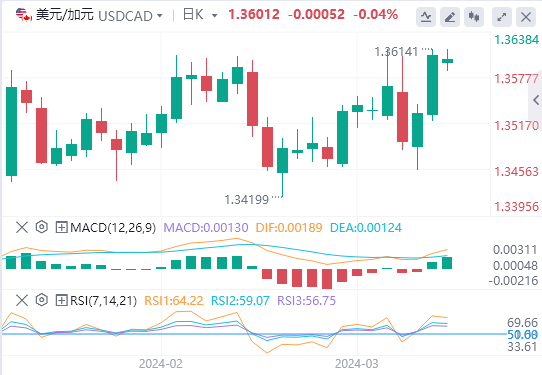 原油价格上涨为加元提供了支撑,进而限制了美元/加元跌幅。此外,加拿大零售销售数据好于预期也可能有助于提振加元。