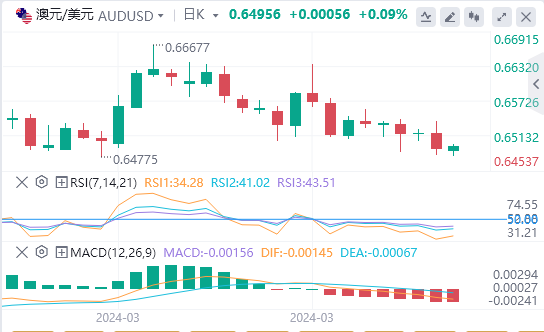 澳元周二交投于0.6490附近。直接支撑位出现在3月份的低点0.6477,然后是主要水平0.6450。跌破该水平可能会促使澳元/美元货币对在0.6400的心理关口附近徘徊。上行方面,即时阻力位出现在0.6500的心理水平。突破后者可能会导致澳元/美元货币对达到 23.6% 斐波那契回撤位 0.6528 和 21 天指数移动平均线 (EMA) 0.6537,然后是主要阻力位 0.6550。