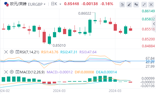 欧洲央行(ECB)成员的鸽派言论反过来又削弱了欧元/英镑的交叉盘,欧元因此陷入困境。欧洲央行管理委员会成员亚尼斯-斯托纳拉斯(YannisStournaras)周日提议,2024年可能总共降息四次,到今年年底累计降息100个基点。此外,欧洲央行决策者罗伯特-霍尔兹曼(RobertHolzmann)表示,可能降息,但要取决于6月份工资和物价动态的变化。