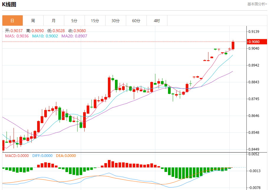 支撑位:0.9055 0.9035 0.9015