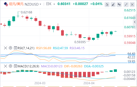 在日线图上,相对强弱指数(RSI)继续显示看跌势头,突显该货币对自3月中旬以来转纽元/美元入负值区域。尽管在前几个交易日略有回升,但这些走势仍不足以将该指标推高至50关口以上,从而维持看跌前景。从积极的一面来看,移动平均收敛散度(MACD)打印出绿色条,这为买家提供了一些启示,因为它暗示了这种势头。