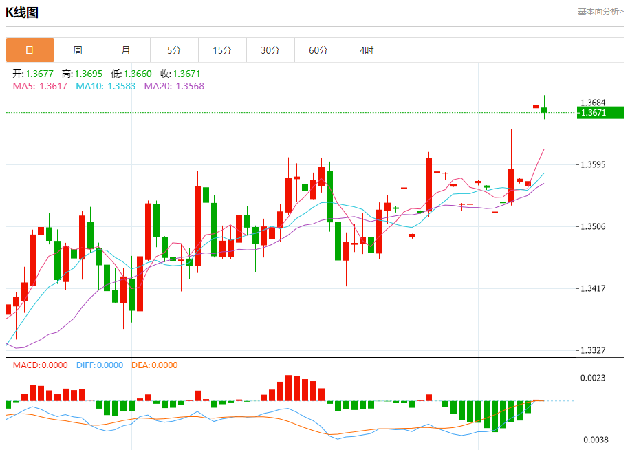 支撑位:1.3650 1.3625 1.3600