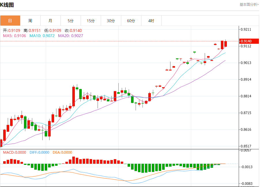今日周一,澳元兑美元报0.6471,涨幅0.13%;美元兑加元报1.3747,跌幅0.18%;美元兑瑞郎报0.9142,跌幅0.03%。