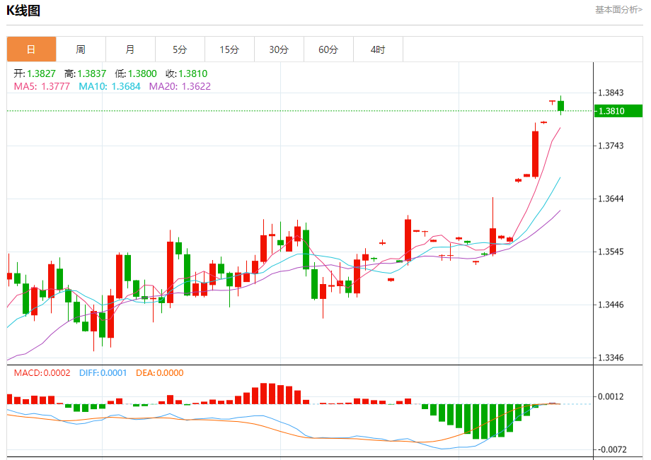 今日周三,澳元兑美元报0.6425,涨幅0.36%;美元兑加元报1.3810,跌幅0.14%;美元兑瑞郎报0.9118,跌幅0.13%。
