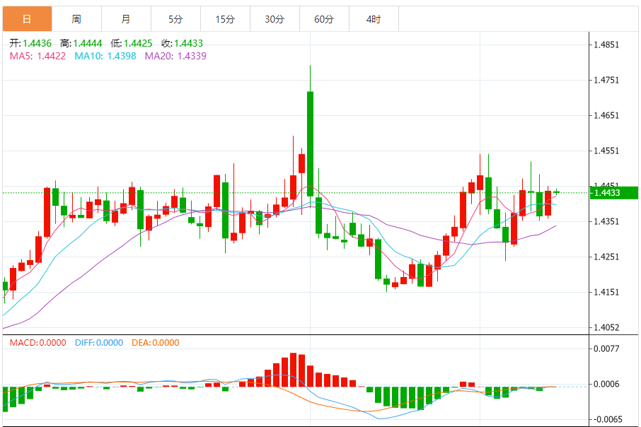 周五,美元/加元徘徊于1.4435下方,现交投于1.4433附近,跌幅0.04%。