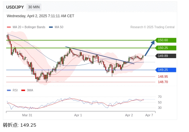 今日分析: 在 149.25 之上,看涨,目标价位为 150.25 ,然后为 150.60 。