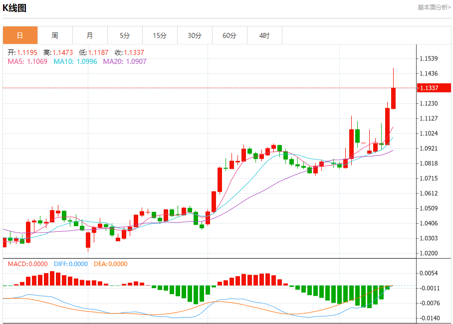 今日周五,欧元兑美元报1.1345,涨幅1.31%;英镑兑美元报1.3088,涨幅0.94%;美元兑日元报142.634,跌幅1.27%。