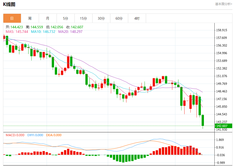 技术点评:跌破144.00,为空头信号,向下的目标将会是141.30。