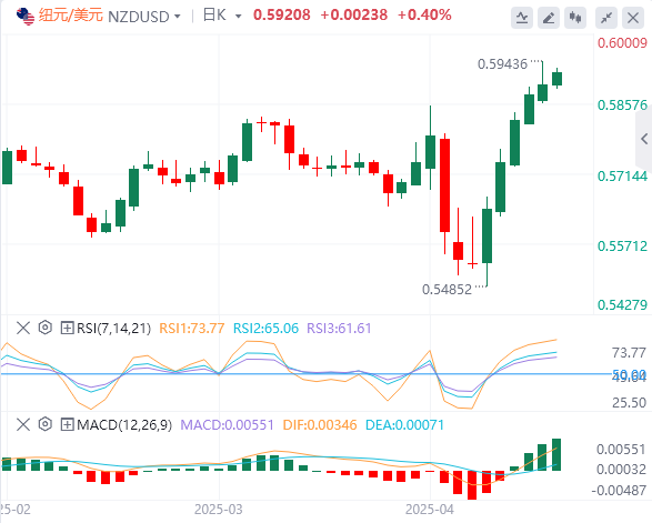 在美中贸易紧张局势升级的情况下,由于投资者对美国资产的信心受到侵蚀,美元(USD)面临阻力,纽元/美元(NZD/USD)货币对升值。《华尔街日报》援引知情人士的话称,特朗普政府旨在利用关税谈判来鼓励美国贸易伙伴减少与中国的接触。