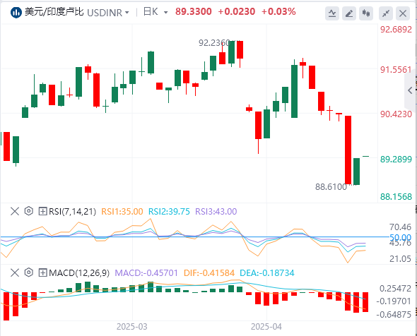 尽管如此,围绕印度股市的乐观情绪可能会为当地货币提供一些支撑。印度基准指数已经收复了本月早些时候因特朗普对等关税而引发的所有损失。人们认为,美国庞大的国内经济比许多面临更高关税的其他国家更能抵御潜在的全球衰退。展望未来,投资者正等待周四晚些时候公布的美国营建许可、新屋开工率、费城联储制造业指数和每周初请失业金人数。印度市场将在耶稣受难日休市。