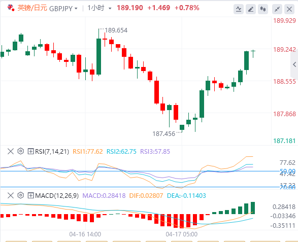 从好的方面来看,如果突破9日均线188.96(与心理水平189.00紧密一致),可能会为英镑/日元交叉盘提供看涨势头,为测试189.70关口附近的对称三角形的上趋势线铺平道路。