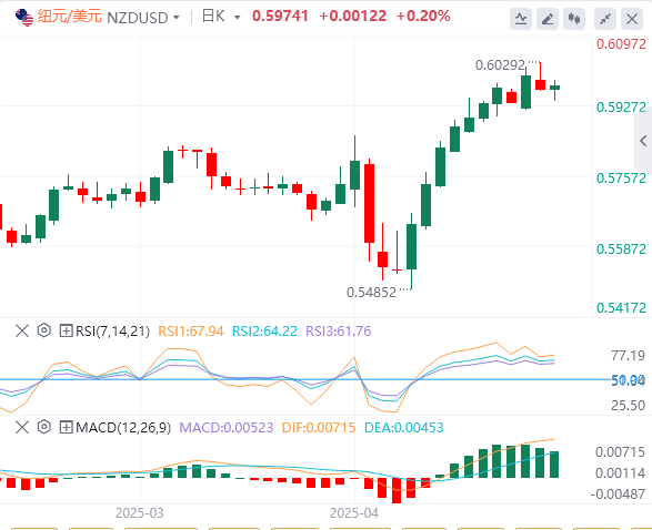 贝森特周二表示,当前与中国的关税对峙不可持续,他预计世界两大经济体之间的贸易战将在不久的将来“降级”。美国与中国贸易紧张局势的缓解激发了市场的乐观情绪,并为作为中国代理的纽元提供了一些支撑,因为中国是新西兰最大的贸易伙伴。
