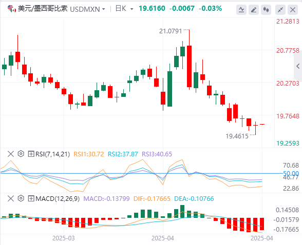 墨西哥比索周三对美元小幅下跌,原因是风险偏好改善,市场对美元的信心恢复,因为美国总统特朗普否认他会解除美联储(Fed)主席杰罗姆-鲍威尔的职务。 截至发稿时,美元/墨西哥比索交投于19.65,上涨0.29%。