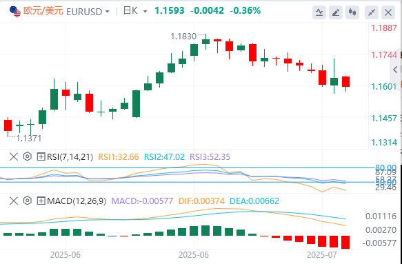 欧元(EUR)在周四欧洲时段开盘时扩大跌幅,在撰写本文时触及盘中低点1.1575,接近三周低点1.1565。更广泛的趋势仍然看跌,价格走势在7月1日高点1.1830的下降通道底部交易。