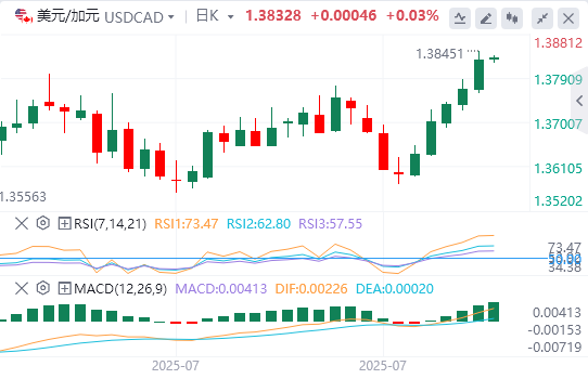 加元的持续疲软将美元/加元推回图表顶部,自5月以来首次支撑该货币对回到1.3800上方。该货币对已经突破了1.3750附近的近期技术水平,美元多头(或加元卖家)面临的下一个挑战将是将美元/加元推回1.3900附近的200日指数移动平均线(EMA)。