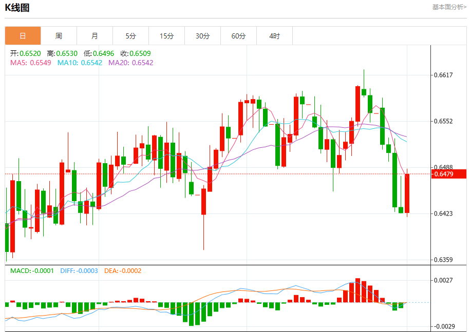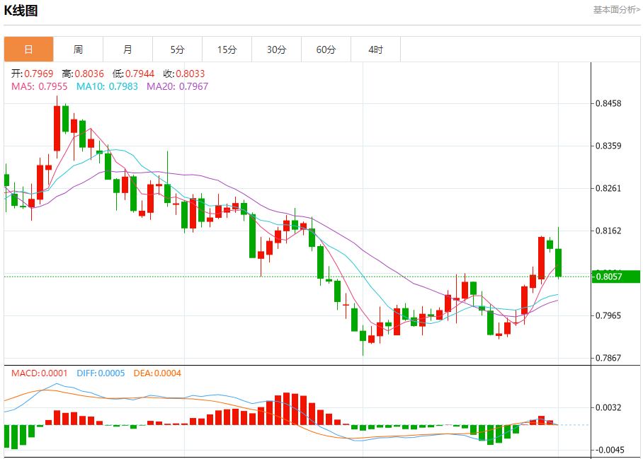 今日周五,澳元兑美元报0.6479,涨幅0.81%;美元兑加元报1.3789,跌幅0.47%;美元兑瑞郎报0.8058,跌幅0.82%。