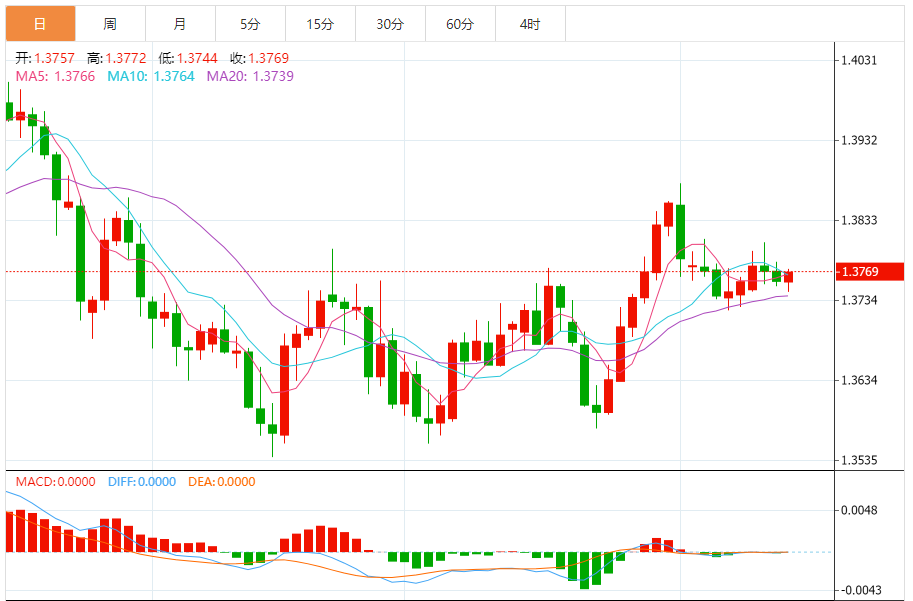 周四,美元/加元徘徊于1.3772下方,现交投于1.3770附近,涨幅0.09%。