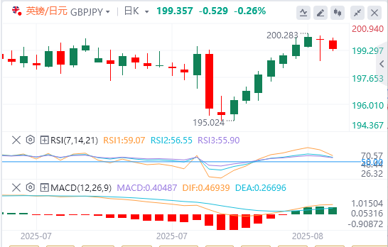 英镑/日元在200.00心理水平附近继续面临抛售压力。然而,随着100日指数移动平均线(EMA)在195.95附近走高,交叉盘的近期趋势仍然看涨。