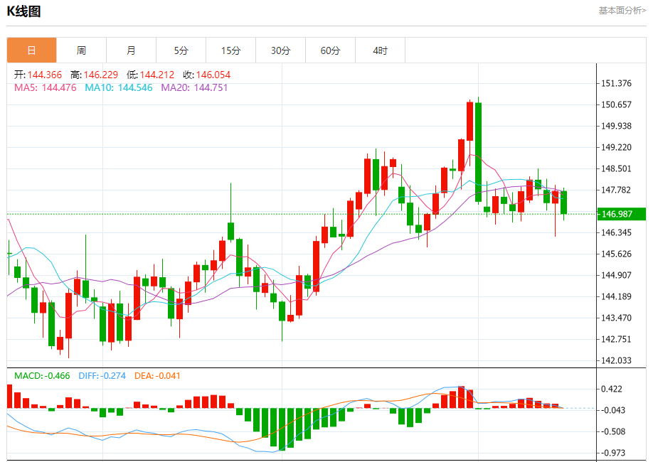 今日周五,欧元兑美元报1.1684,涨幅0.33%;英镑兑美元报1.3559,涨幅0.22%;美元兑日元报147.002,跌幅0.52%。