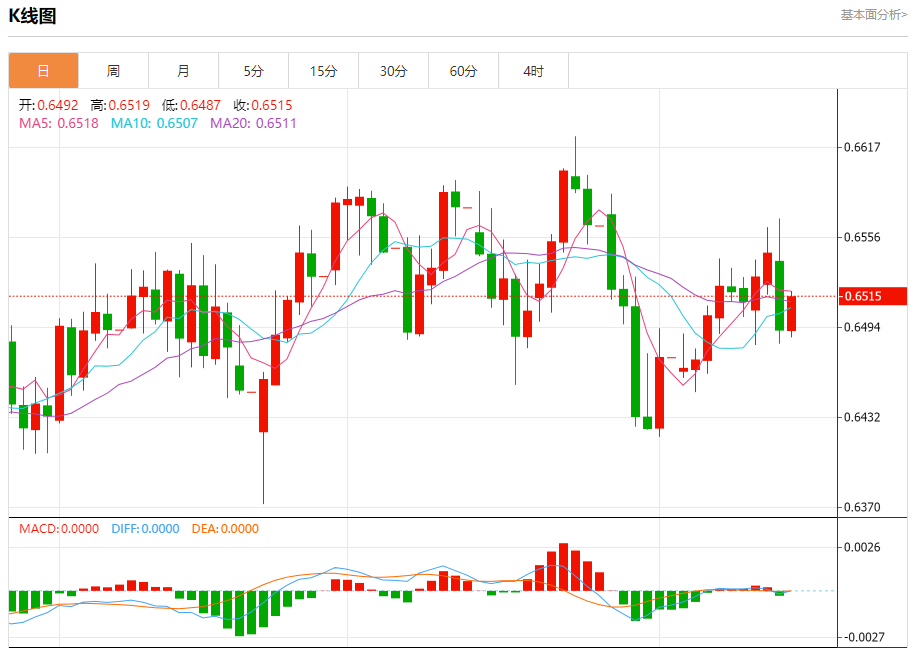 技术点评:只要0.6515阻力位不被突破,向下跌破0.6480位置的风险很高。