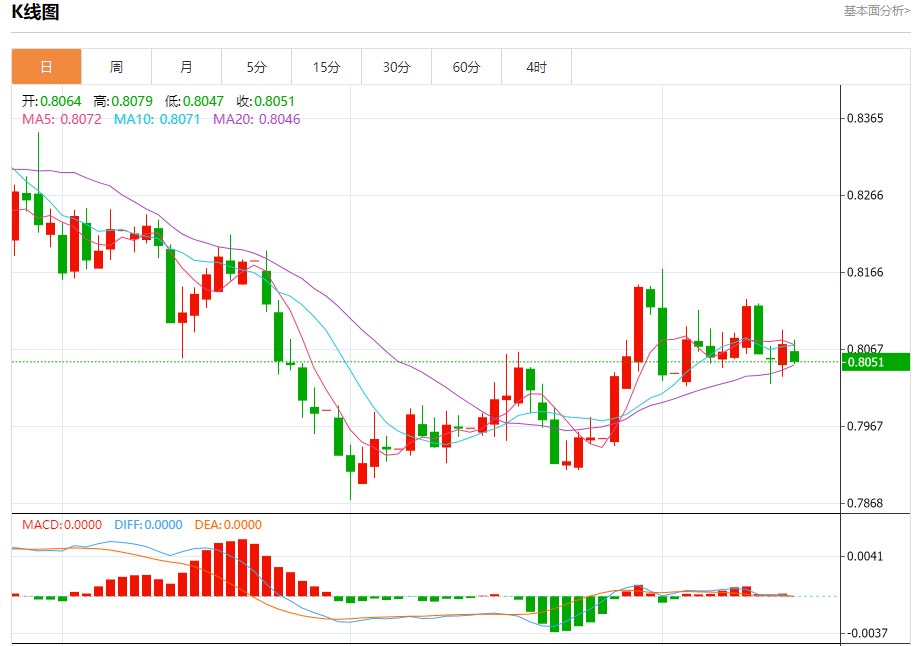 今日周五,澳元兑美元报0.6516,涨幅0.35%;美元兑加元报1.3792,跌幅0.18%;美元兑瑞郎报0.8054,跌幅0.27%。