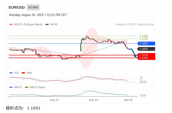 备选策略: 在1.1691以上,查找1.1722和1.1741。