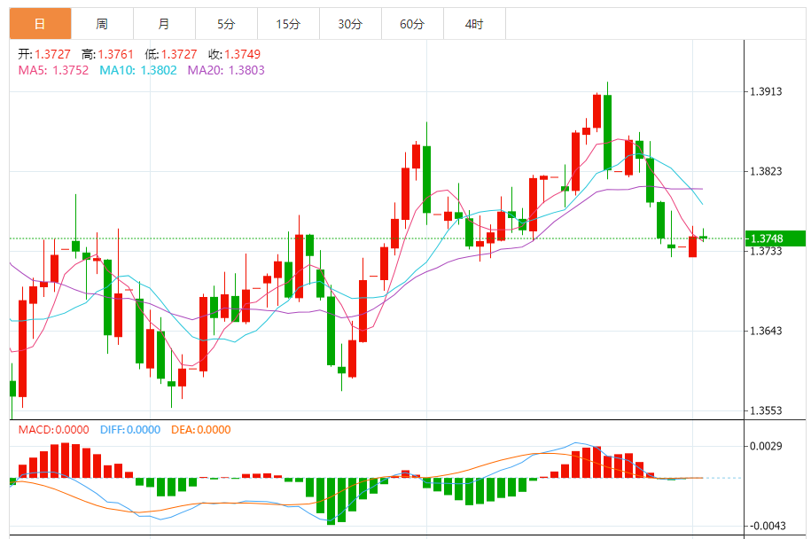 周二,美元/加元徘徊于1.3749下方,现交投于1.3747附近,跌幅0.01%。