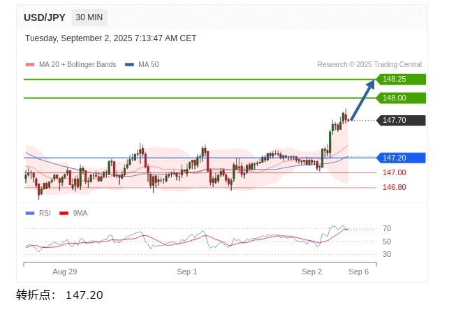 今日分析: 在 147.20 之上,看涨,目标价位为 148.00 ,然后为 148.25 。