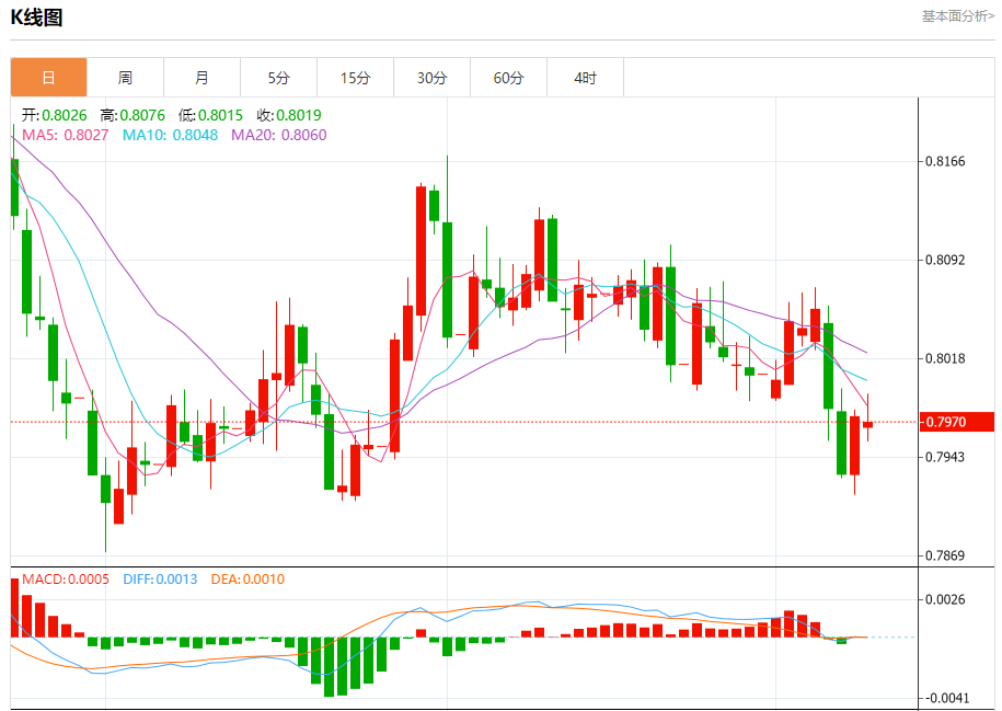 阻力位:0.8035 0.8015 0.7995