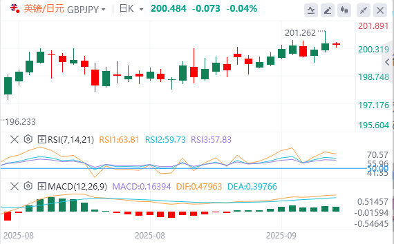 英镑/日元连续出现看涨蜡烛,周四强劲上涨0.11%,但仍未能重新测试当前年初至今(YTD)高点201.72。