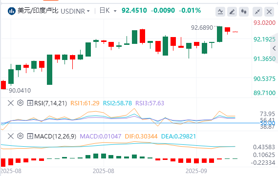 周五,美元/印度卢比在88.40附近坚挺交易。该货币对的近期趋势仍然看涨,因为它在修正至20日指数移动平均线(EMA)附近后强劲反弹,目前交投于88.08附近。