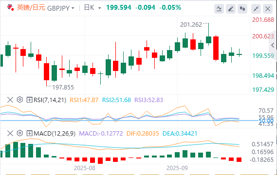 英镑/日元交叉盘可能会在心理水平200.00找到主要阻力位,随后是9月18日触及的14个月高点201.27。突破该水平将支撑市场情绪,并促使货币交叉盘探索上升通道上限203.70附近的区域。