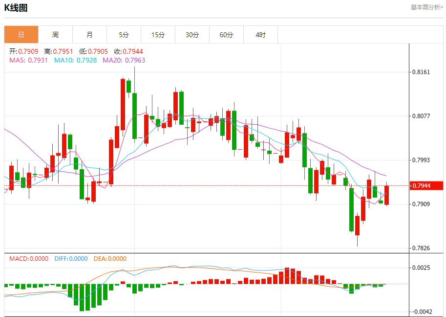 今日周三,澳元兑美元报0.6596,跌幅0.04%;美元兑加元报1.3876,涨幅0.29%;美元兑瑞郎报0.7946,涨幅0.43%。