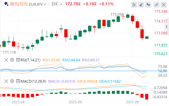 下档方面,直接支撑位于50日均线172.47。跌破该水平将削弱中期价格势头,并促使欧元/日元交叉盘在7月31日创下的三个月低点169.72附近徘徊。