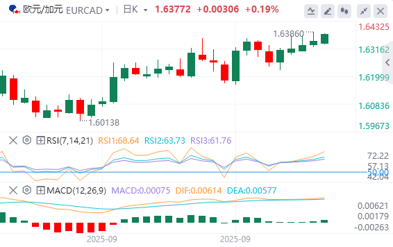 欧洲央行(ECB)行长克里斯蒂娜·拉加德表示,欧元区通胀前景没有严重威胁,但官员们必须保持警惕。她的言论表明,欧洲央行并不急于进一步降低借贷成本。这反过来又支持了共享货币兑加元。