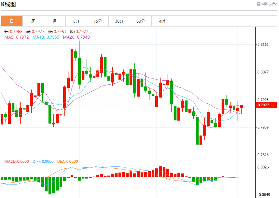 今日周四,澳元兑美元报0.6600,跌幅0.21%;美元兑加元报1.3953,涨幅0.13%;美元兑瑞郎报0.7978,涨幅0.09%。