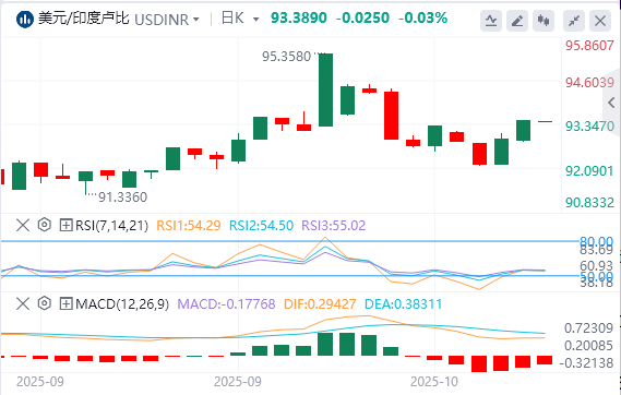 美元/印度卢比在88.76至89.11之间的窄幅区间内持续两周多。随着20日指数移动平均线(EMA)在88.70附近走高,该货币对的近期趋势仍然看涨。