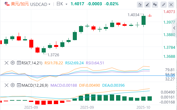 周四突破200日SMA和1.4000心理关口被视为美元/加元多头的关键触发因素。然而,缺乏在2月-6月下跌的38.2%斐波那契回撤位之上的跟进买盘需要一些谨慎。此外,日线相对强弱指数(RSI)接近超买区域,因此在进一步升值之前,等待一些短期整合或适度回调是明智的。