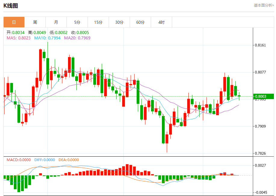 今日周三,澳元兑美元报0.6510,涨幅0.37%;美元兑加元报1.4049,涨幅0.01%;美元兑瑞郎报0.8005,跌幅0.03%。