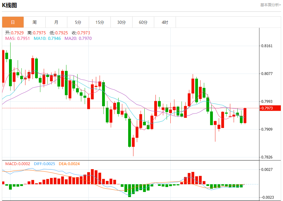 今日周三,澳元兑美元报0.6592,涨幅0.11%;美元兑加元报1.3937,跌幅0.07%;美元兑瑞郎报0.7975,涨幅0.56%。