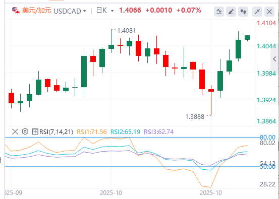 美元/加元已回升至1.4050区域,随着加元兑美元继续下跌,美元/加元有望在七个月高点上新一轮上涨。