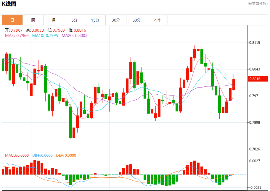 今日周三,澳元兑美元报0.6492,跌幅0.25%;美元兑加元报1.4005,涨幅0.11%;美元兑瑞郎报0.8018,涨幅0.29%。