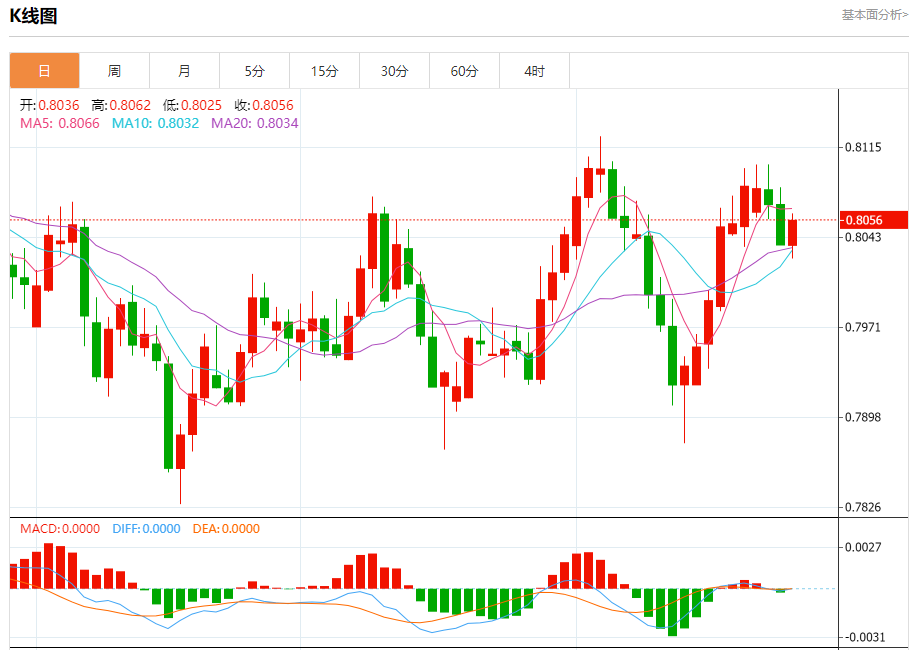 支撑位:0.8025 0.8000 0.7980
