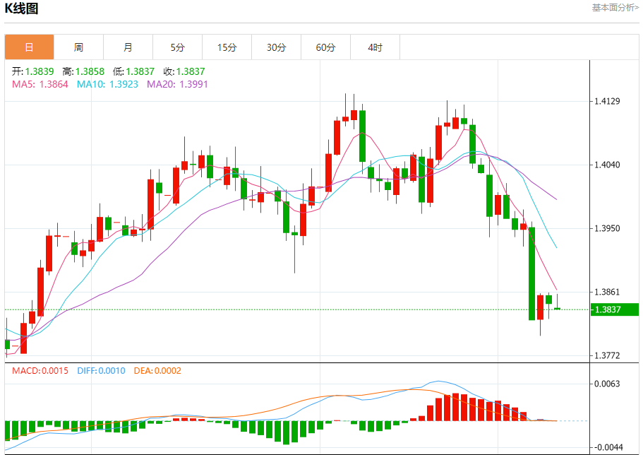今日周三,澳元兑美元报0.6650,涨幅0.12%;美元兑加元报1.3839,跌幅0.05%;美元兑瑞郎报0.8046,跌幅0.21%。